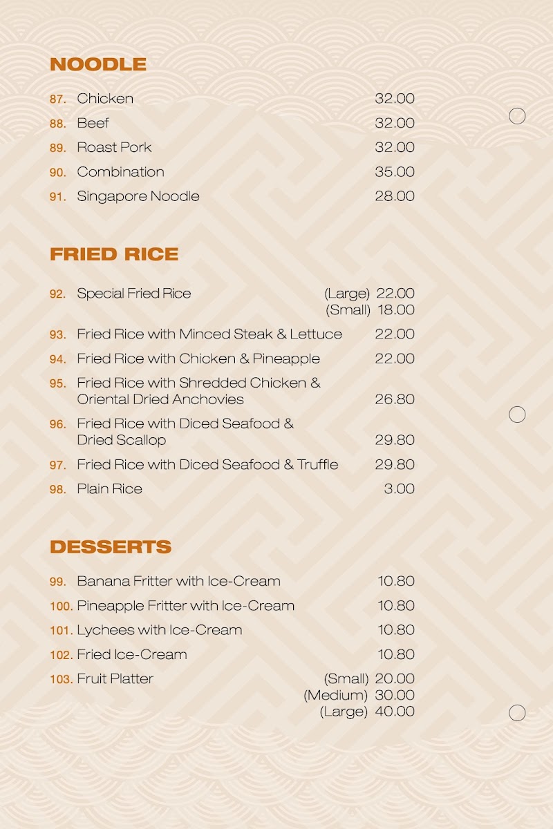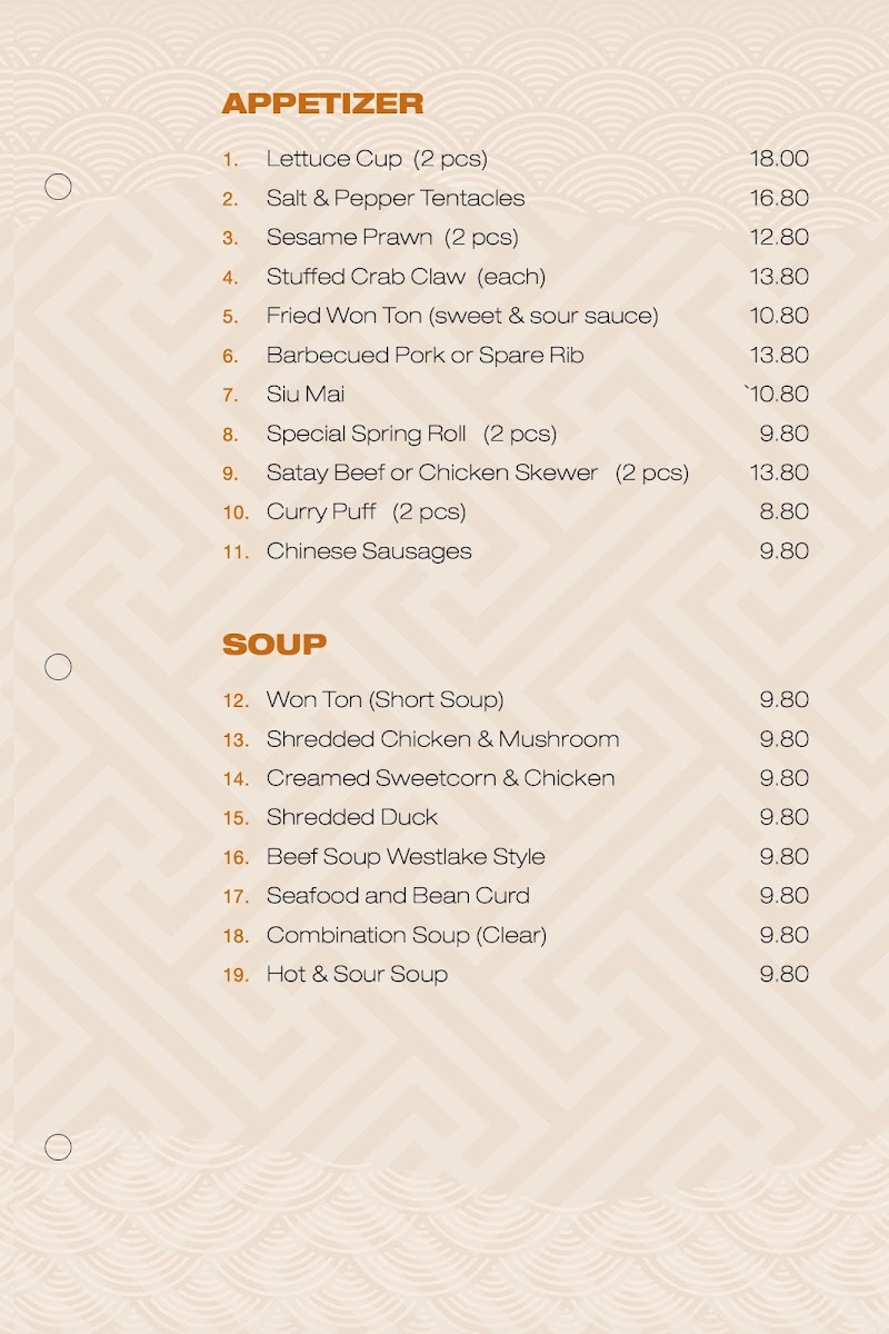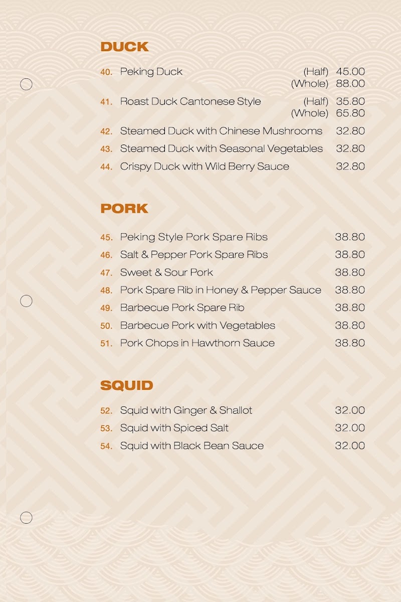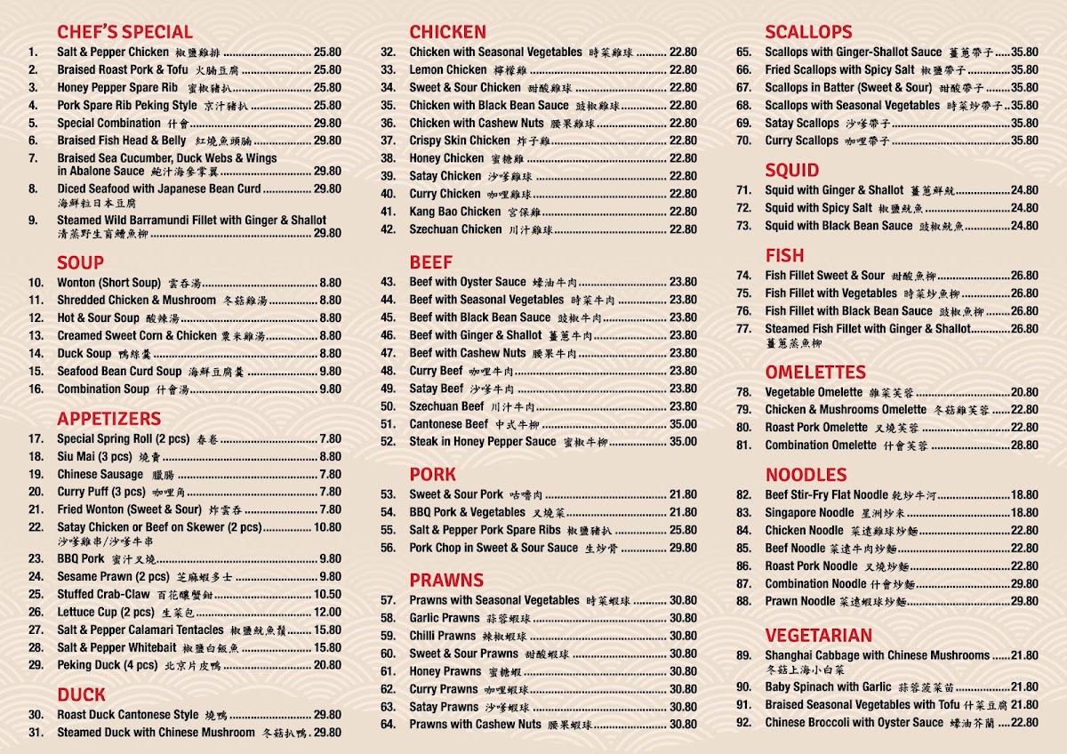 You’ll find a variety of dim sum treats such as prawn dumplings with chives and steamed beef balls, alongside heartier main dishes like peipah crispy duck, braised fish head and belly, or roast pork served with rice. The menu also includes unique bites like pan-fried salt and pepper stuffed lotus root and lobster with ginger and shallot sauce, which bring gentle bursts of flavor that complement the simple, warm atmosphere.